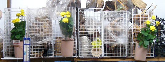 | EMBシートで花を包むのは面倒なので、周りを囲んだらどうか? 安価で簡単に行う方法として屏風を作りました。 (ダンボール紙等で作り、綺麗な紙を貼るのも良いと思います。) |