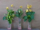 | 経過 原因不明の腐敗が起き予想が出来なくなった。 @EMBシートなし 気温が低いせいか著しい差が付きませんでした。 AEMBシート包み 2輪になってしまいましたが、45日目までは、色・形共に一番綺麗に咲いていました。 BEMBシート屏風 EMBの効果が少ないのではと心配させられました。 |