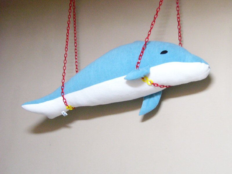 画像は、エンバランスイルカ(抱き枕)。目が可愛いくない・長さが短いと言いつつ妻が使用しています。昼間は、こんな状態になっていました。 |