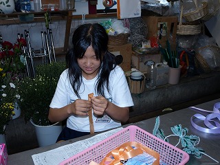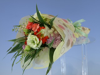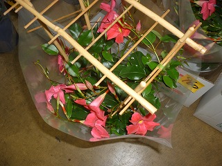| 今日は、自分で花束を作りました。頑張って作りました。リボンも大変でした。 |