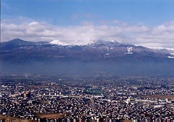 福島盆地のほぼ中央にある信夫山よりの吾妻小富士 |