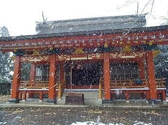 信夫山 山頂のひとつにある羽黒神社 真冬の吹雪にもかかわらす訪れる 人が居たのは驚きでした。 神社の下の道路までは、 度々来た事があったのですが、 ここを訪れるのは数十年ぶりでした。 車で行く人は、横の駐車場?からが楽です。 |