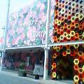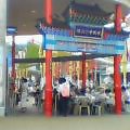 上 コモン1 キリギスタン、カザフスタンパビリオン前を水が流れていて 晴れの日は水遊びする人がたくさん!!下 コモン1 アジアのパビリオンがたくさんある横浜中華街展。