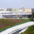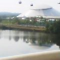EXPOドームと近くの かきつばた池 上を通るのがキッコロゴンドラで、北ゲートからドーム直通。
