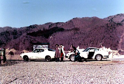 車はB君のチェリーFUと私のフェアレディZの2台。U君を含め3人でした。残念ながら上高地は冬季閉鎖中で一路高山へ。民宿へ着き食事をしていると(あれっ?と思ったら)B君は脇にいた女の子に、ご飯のおかわりを頼んで仲良く話をしていました。私とU君は、あ然としていましたが、富山から3台3人で来たお兄ちゃん達も、あっけにとられていました。翌日は、B君が仲良くなった3人の女子大生を乗せて白川郷へ。B君は3連を鳴らし外部スピーカーで音楽を流し、峠は宴会場と化していました。白川郷でもB君は人気者で合掌作りの民宿では夜中まで楽しい時を過ごしました。翌日は高山駅まで女性達を送り。車を軽量化して一路、妻籠宿へ。