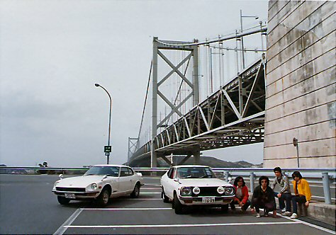 B君に「春は何処に行く?」と聞くと。「山陰だね!」と。今回は、旅行中に聞く(鳴らす?)音楽の選曲から始まりました。化粧品のCMソングを中心に数曲をカセットに録音し。常に私達の春の旅テーマソングが鳴るようにし旅の日記帳も用意しました。車は、フェアレディZ(2/2)とB君のチェリーFU。B君のフル装備(遊び道具)に対して私は、マフラーの交換、リヤスポイラーの取り付け、ペダル・シートの調整と点火系・無線・オーディオに手を加えるだけでの出発でした。 |