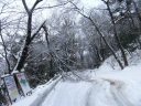 せっかく雪が融けたのに、また積もってしまいました。夜の13号線(左)は綺麗でしたが、街路樹に積もった雪が落ちて来るので歩きにくい夜でした。右は、信夫山、雪で枝が折れ道を塞いでいました。風の強い日に高さ十数mの杉の木が目の前に倒れて来た事があったので散歩も注意しなくてはと思います。 |