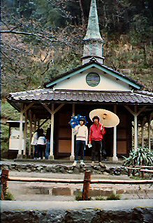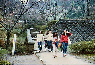 津和野の宿に着きM君と二人で、くつろいでいると。B君が女の子2人を連れて戻ってきました。今度は熊本から来たという大学生でした。後で、どうやって知り合ったのかを聞くと、「廊下で見かけたので部屋の前で出て来るのを待って声をかけた。」との事でした。(次回はラジコンカーでノックしようね。と) 熊本の二人と、また宴会。翌日は津和野の観光案内をして駅まで送りました。 |