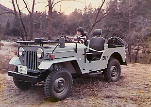 | 2シーターZ(S30)を手放して、唯茂君が買った。三菱のガソリンエンジン、ジープ HJー58。 今となっては、この車が私の一生で、たった一度の嬉しい?経験をさせてくれました。 |