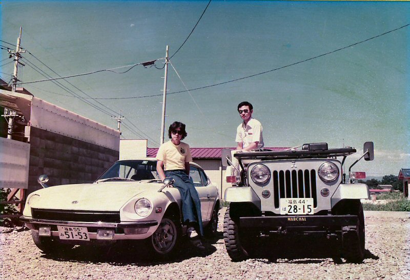 唯茂君がZ(GS30)を使うと言うのでジープと交換。ジープを数ヶ月間東京で乗り回し、また交換の為福島へ行く時でした。これで最後だから高速道路まではオープンで走ろうと、下の写真のような状態で走っていました。そして、近所にあるバス停(女子大と女子高が並んでいる)にさしかかった時でした。(今日も女の子が沢山いるなーと思いながら、無視して通過しようとした時)“キャー!キャー!”と騒ぐ声が・・・?何だろうと思ったら「カッコイイー!乗せてー!乗せてー!」と聞こえました。誰に言っているんだろうと思い、周りを見渡すと私しかいないのです。それでどうしたって、“逃げました”だって・・・。女の子が団体でドーッ!と追いかけて来るんですよ。2〜3人なら話し合いもあると思いますが、団体は怖いですね。でも、唯茂君のジープのおかげで生まれて初めて“カッコイイー!”と言われたのです。(車がだと思いますが) |