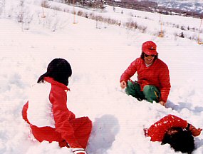 この日私は、ゲレンデでサーフィンを試みる人間を、初めて見ました。それはB君がソリの上に立ち上がり、「サーファー!」と叫びながら滑り下りようとしていたのでした。残念ならがフィルム式の8ミリの小さい画像しかありません。 |