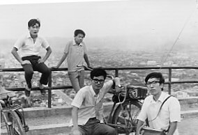 | 高校一年生の頃だと思います。アマチュア無線のコンテスト(決められた時間内に。どれだけ多くの無線局と交信できるかを競うもの。)があり。唯茂君が大学の無線クラブで参加していると聞いて。自転車のカゴにやっと入るほど大きいトランシーバー(TR−1000)と50MHzの3エレメント八木アンテナ(分解しても1.5m×6本+2本)と2mほどの竹を自転車に縛り付けて信夫山第一展望台へ。そこで、八木アンテナを組み立て、竹ざおに取り付けて、仙台方面を向けて電波を出しました。残念ながら唯茂君は、何処かへ出かけたとの事で。同じクラブの人と話しをしただけで終わりました。やれやれと思い。アンテナを分解して駐車場まで下りてくると。良く相手をしてくれる、お兄様達が集まっていました。私以外にも自転車で登って来た人がいたようです。 |