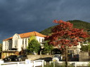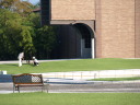 朝の散歩をしていて気がつくと。手がポケットに入っています。木曜日。良い天気に誘われて美術館へ行くと。警報が鳴り「火災が発生しました。」という緊張感の無いアナウンスに(何だ、訓練かと。)邪魔をしないように早々に帰って来ました。(図書館の前のベンチで、のんびりしたくなるような天気でした。) |