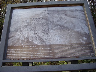 時は14世紀、建武の新政で陸奥守に任命された北畠顕家が、それまで多賀城にあった陸奥の国府を、西暦1337年、霊山城に移したことによるものである。事の起こりは守護、地頭の土地の領有権について時計の針を逆戻ししたかのような方針で望む建武の新政、後醍醐天皇〔南朝〕と武家政権を目指す足利尊氏〔北朝〕とが対立した南北朝動乱の時代である。当時の霊山には山頂に霊山寺があり三千を数える僧兵がいたと言われている。そのため、難攻の要害の霊山城に拠点を移したのも当然と伺える。霊山は、西暦859年比叡山延暦寺の座主円仁〔慈覚大師〕の開山と伝えられており、釈迦が修行したインドの霊鷲山になぞらえて命名されたと言われている。その間470年余、東北山岳仏教の中心地として栄えていたという。 西暦1347年霊山城が落城した時に霊山寺も焼き払われ跡形もなく消え去ってしまった。歴史にもしもは無いが、もしも山頂にそのままの霊山寺が現存していたならば山岳仏教の本山として世界遺産に登録をと、さぞかし物議をかもしていたに違いない。現在山頂には当時の面影を忍ぶものは何も無い。 |